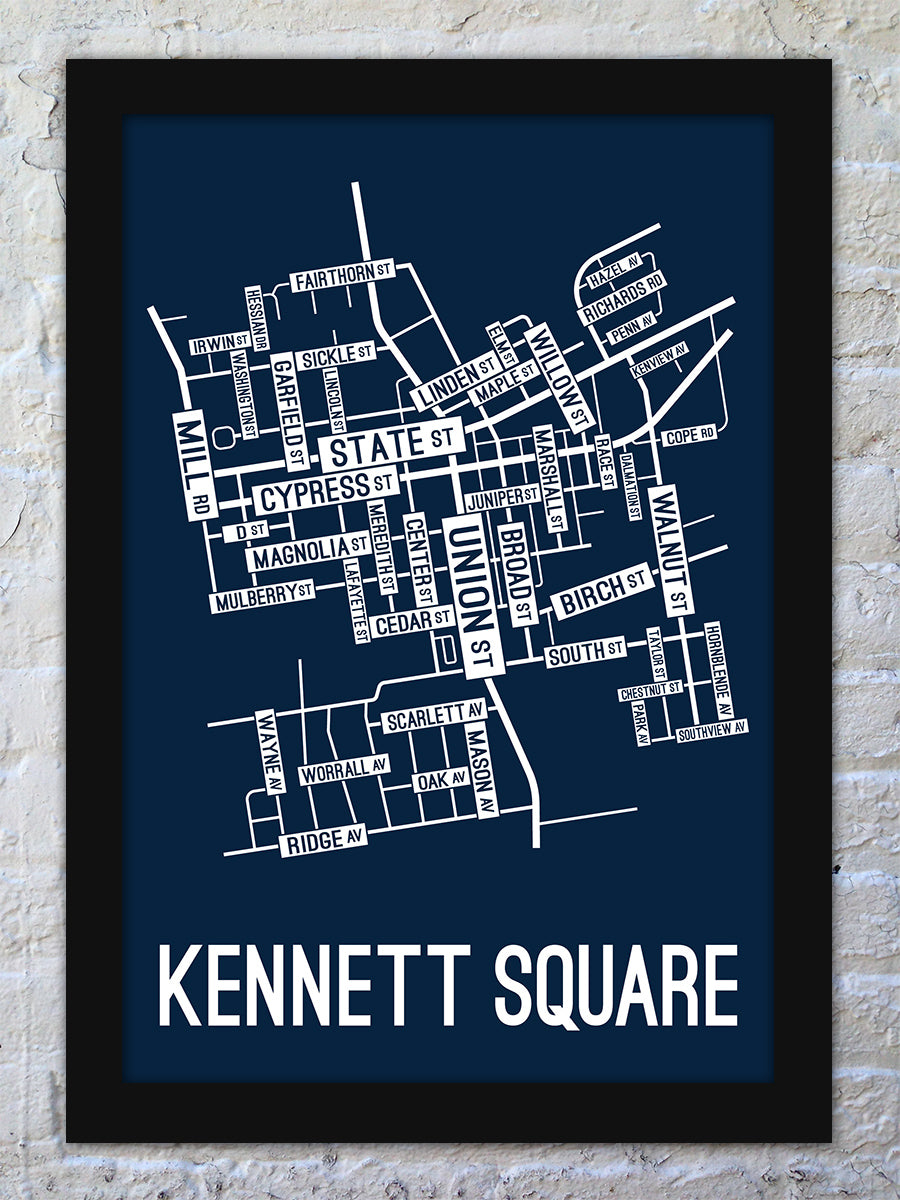 Kennett Square, Pennsylvania Street Map Screen Print School
